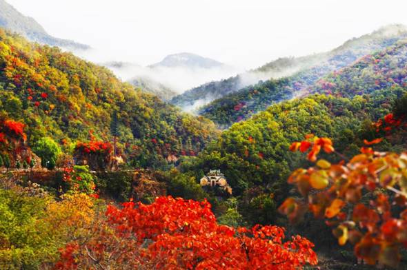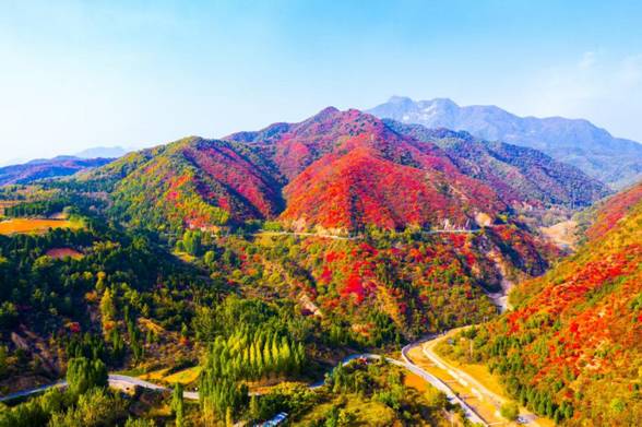 王屋山地處河南省濟源市,這里森林茂密,植被豐富,擁有集中連片的原始次生林,森林覆蓋率高達98%以上,是河南省植物物種最豐富的森林之一。每年10月中旬至11月中旬,是王屋山紅葉最為動人的時期。在此期間,黃櫨、槭樹、楓樹、丹楓、火炬樹、紅葉李等多種觀賞型紅葉樹種相繼“換裝”,從山腳至山頂,由淺紅至深絳,色彩斑斕,美不勝收。特別是經過霜打之后,葉片更加紅艷奪目,在藍天白云與青松翠柏的映襯下,構成一幅濃墨重彩的天然畫卷。游客漫步山間步道,可近距離欣賞紅葉與巖壁相映成趣的景致;登臨高處,極目遠眺,可見整片山谷仿佛披上了紅色的錦繡,氣勢恢宏,令人心曠神怡。