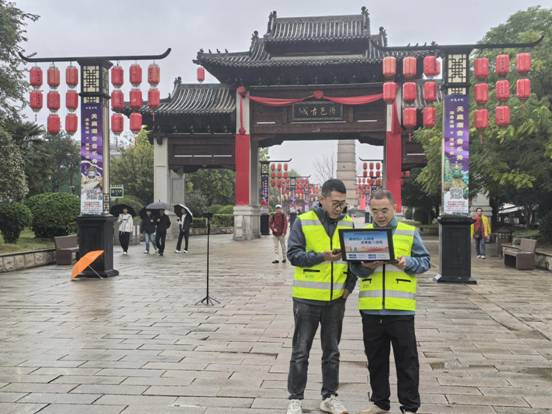 圖為國慶假日期間中國移動洛陽分公司工作人員在洛邑古城適時開展測試網(wǎng)絡