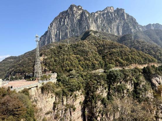 (圖為:河南新鄉(xiāng)郭亮村峭壁上的移動(dòng)基站 梁茹/攝)